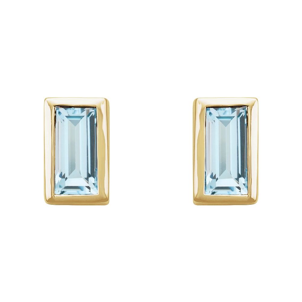 14k gold Blue Topaz Bezel set Stud Earrings