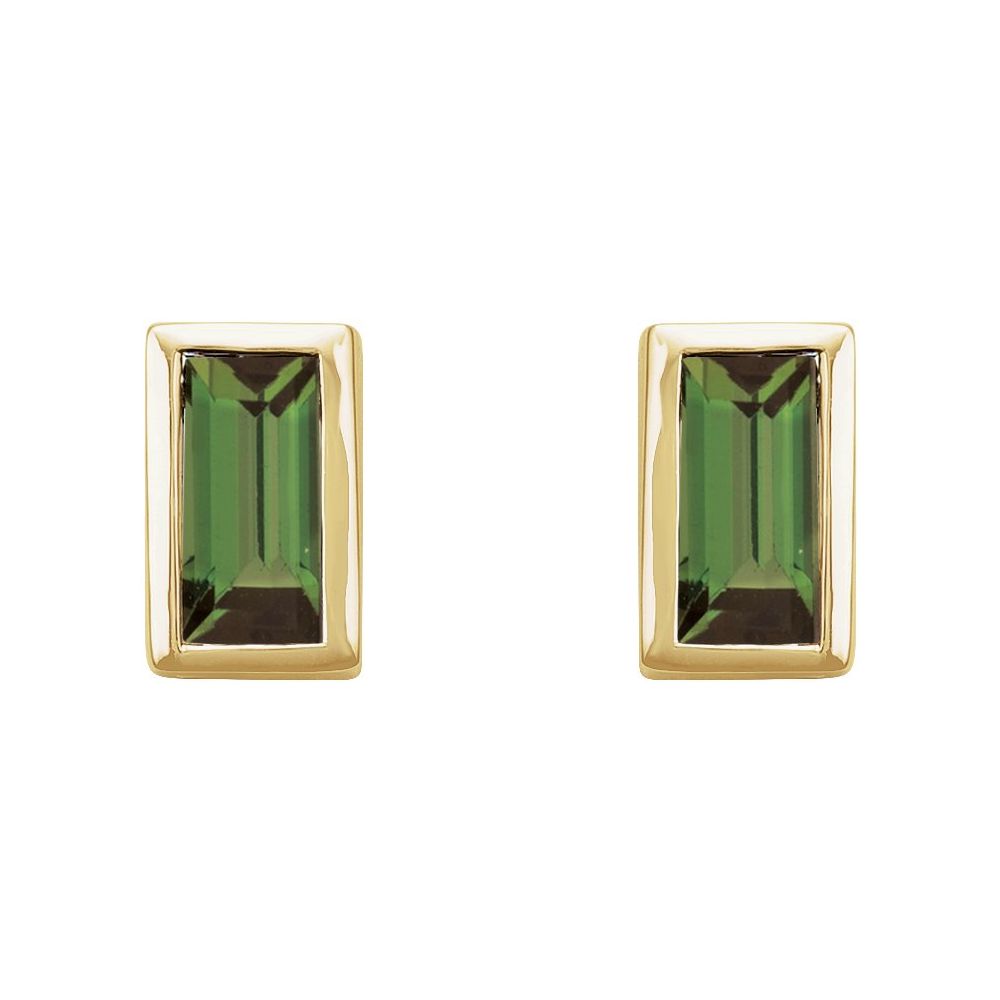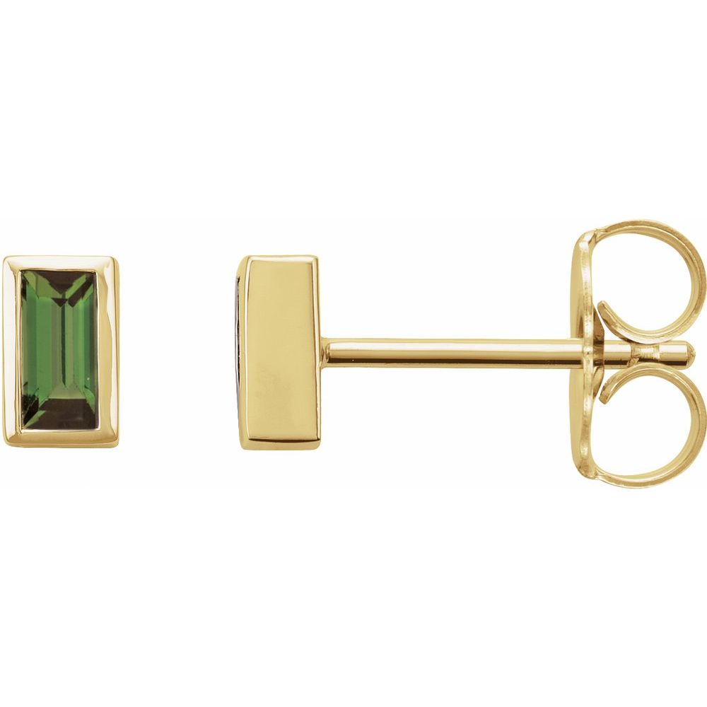 14k gold Green Tourmaline Bezel set Stud Earrings