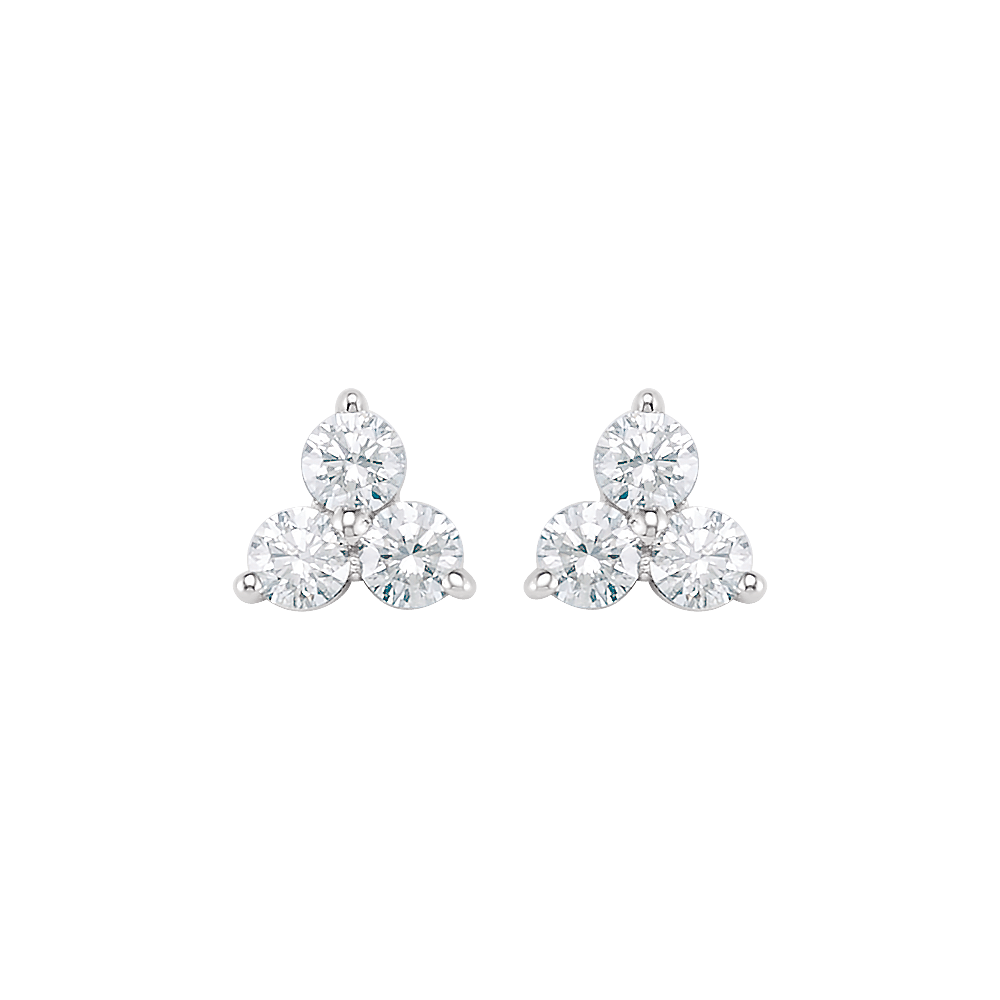 Three Stone Diamond Stud Earring