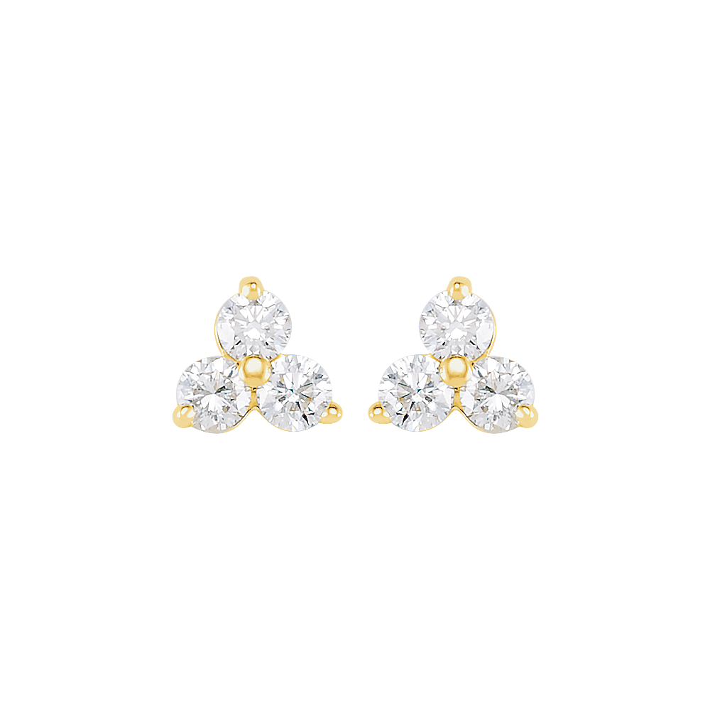 14k gold 3 stone Diamond Cluster Earrings